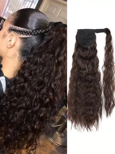 22inch Corn Wave Ponytail Extension Clip In Long Wavy Curly Wrap Around Pony Tail Heat Resistant Synthetic Hairpiece For Women - Brown - View 1