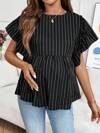 SHEIN Pregnant Women's Round Neck Cap Sleeve Ruffle Striped Casual T-Shirt, Summer