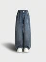Young Girl's Bold & Street Style Wide Leg Jeans, Multiple Distressed Details, Elastic Waistband, Relaxed Fit, Vintage Wash, Versatile For All Seasons