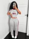 LovelyWholesale Women's Casual Hooded Collar Cute Letter Print Zip Up Crop Top Cardigan T-Shirt Flare Pants Spring Autumn