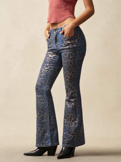 Bohemela Low Rise Flare Leg Gold Foil Printed Women Jeans 599119 - Medium Wash - View 3