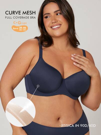 LUVLETTE Plus Sheer Vitality Breathable Full Coverage Curve Bra - Navy Blue - View 1