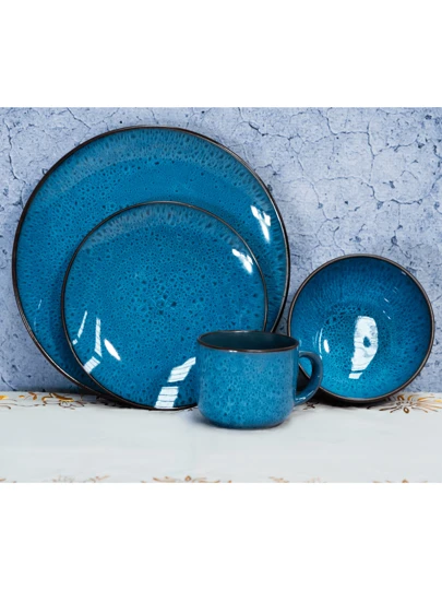 Luxury Complete Cobalt Blue Dinnerware Set For 4 People 16pcs - Blue - View 3