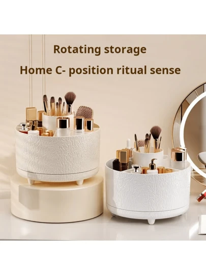 Luxury Rotating Makeup Brush Holder Storage Box, Plastic Desktop Organizer Rack For Home Bedroom - Multicolor - View 1