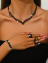 6pcs/Set Luxury European Style Rhinestone Necklace, Bracelet, Earrings And Ring Jewelry Set For Banquet