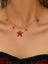 1pc Fashionable Minimalist Gold Heart, Starfish, Bow Knot, Glass Rhinestone Tassel, Rhinestone Tassel, Faux Pearl Inlaid Gemstone Chain Necklace, Rose Pattern Heart Pendant, Copper Snake Bone Chain Clasp, Women's Minimalist Y-Shaped Long Necklace, Suitable For Women's Vacation, Party Wear