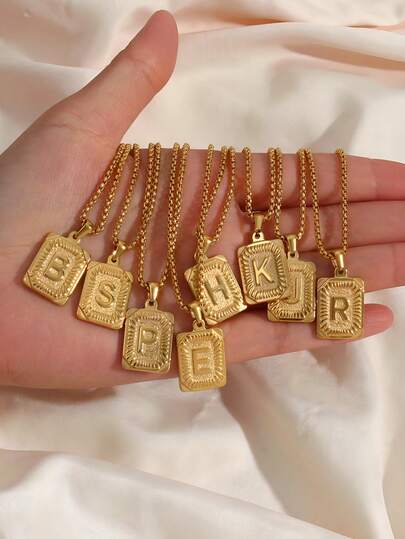 MECYLIFE 1pc Bestselling Stainless Steel Letter Pendant Necklace, Versatile Layered Wear Letter Jewelry Personalized Name Necklace For Women - Yellow Gold - View 1