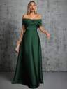 Asymmetrical One Shoulder Pleated Bust & Hollow Waist High Split A-Line Mesh Dress, Bridesmaid Dress