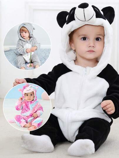 MICHLEY 1pc Cartoon Animal Print Flannel Cozy Sleeping Bag, Long Sleeve, Double Zipper Design, Unisex Baby, Suitable For All Seasons And Daily Use - Multicolor - View 1
