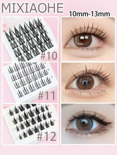 MIXIAOHE Small Box Travel Korean Style False Eyelashes 20 Clusters, DIY C-Curl Density, Natural Looking, Segmented False Eyelashes For Daily Use, Convenient To Carry, Length 10mm-13mm - Black - View 1
