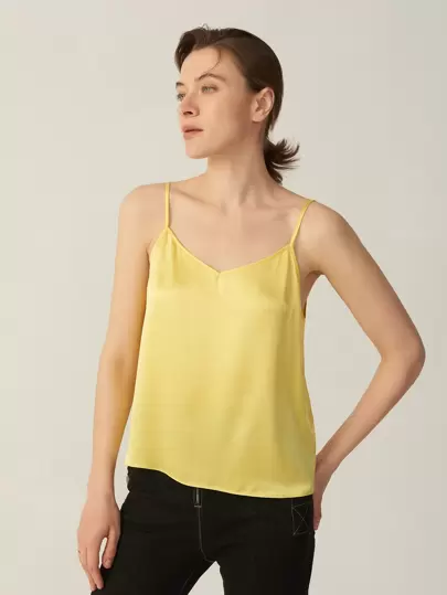 MOTF PREMIUM 100%  MULBERRY SILK GRADE 6A 19MM CAMI TOP - Yellow - View 10