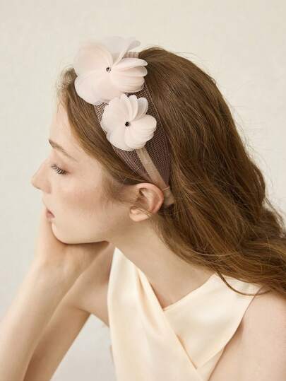 MOTF PREMIUM BIG PINK FLOWER MESH HEADBAND - Baby Pink - View 9