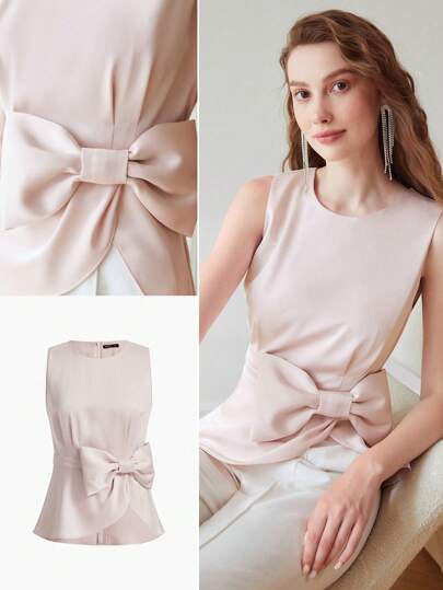 MOTF PREMIUM BOW DETAIL BLOUSE - Coral Pink - View 8