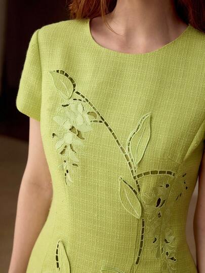 MOTF PREMIUM DELICATE LASER EMBROIDERED SHORT DRESS, SPRING/SUMMER - Green - View 4