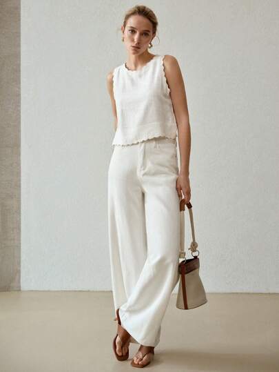 MOTF PREMIUM LINEN SOLID SCALLOP EDGE TANK TOP - White - View 1