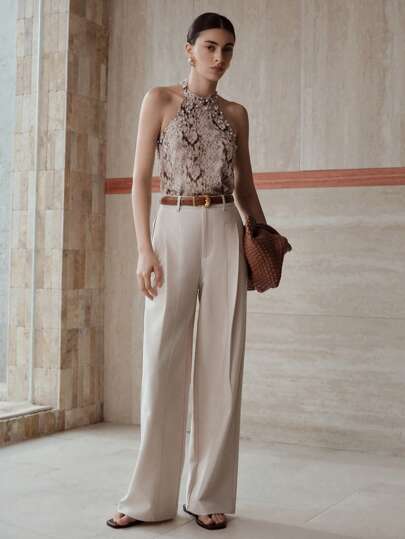 MOTF PREMIUM SOLID FOLD PLEATED SLANT POCKET WIDE LEG PANTS - Beige - View 9