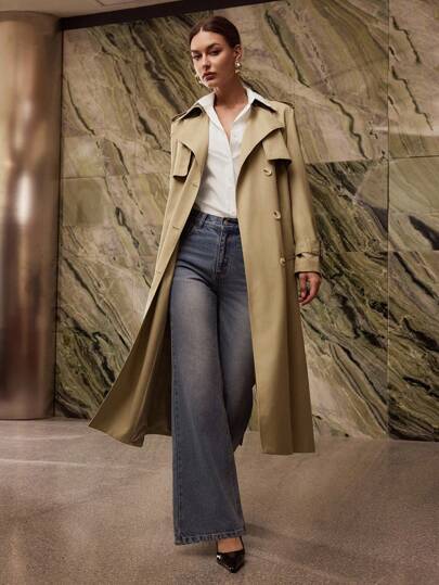 MOTF PREMIUM STYLISH KHAKI LAPEL COLLAR TRENCH COAT - Khaki - View 6