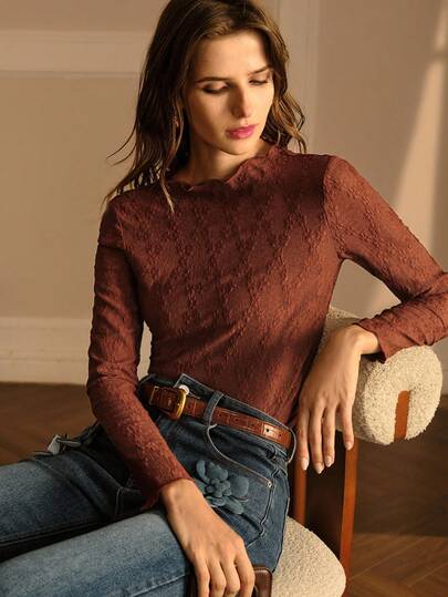 MOTF PREMIUM TEXTURED LETTUCE TRIM T-SHIRT - Brown - View 1