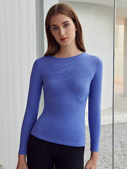 MOTF PREMIUM VISCOSE GATHERED T-SHIRT - Blue - View 1