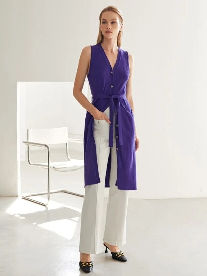 MOTF PREMIUM VISCOSE SLEEVELESS BELTED CARDIGAN - Purple - View 10