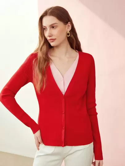 MOTF PREMIUM TWO-TONE DOUBLE LAYER CARDIGAN - Red - View 1