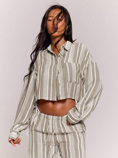 MUSERA Textured Linen Stripe Button Shirt Co-Ord Top Only Spring Summer Beachwear Holiday Vacation Cute Casual - Multicolor - View 1