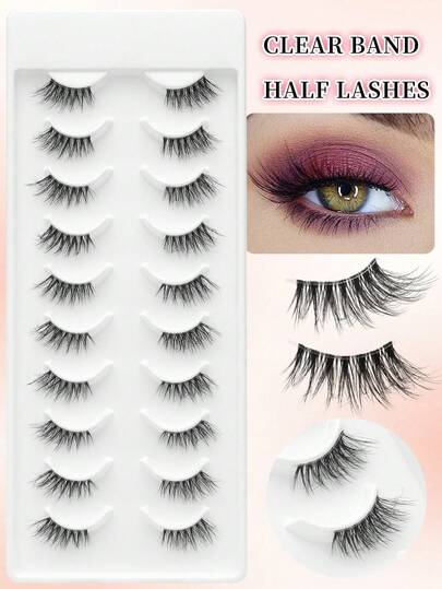 MX01 Cat Eye False Eyelashes, 10 Pairs | Waterproof Tail Extension, 3X Magnifying | Ultra Soft 0.05mm Fiber, Reusable - Black - View 1