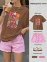 TEQUILA Printed Women's Oversize Short-Sleeved Top With Striped Shorts Set, Tops, Summer Clothing, Short-Sleeved,Chinese New Year, Lunar New Year, Year Of The Year Of The Horse, Spring Festival,Happy New Year , Valentine's Day, Valentine's Gift, Valentine's Day Gift For Her, Valentine's Present