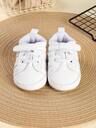 1 Pair Boys' Solid Color PU Bear Embroidery Hook And Loop Design Flat Casual Fashion Cartoon Cute Toddler Sports Shoes, Suitable For Spring