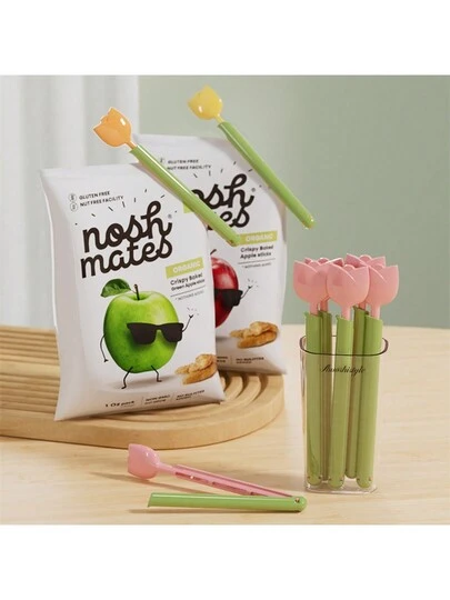 Magnetic Tulip Shaped Bag Clips Set, Food Plastic Bag Sealing Clips, Home Use Snack Airtight Sealing Clips, Attachable To Refrigerator - One Size - View 1