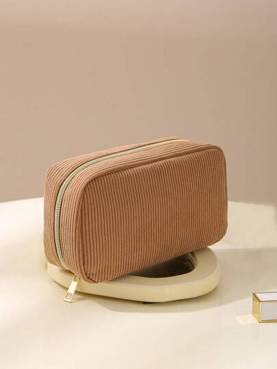 Makeup Bag Thickened In Autumn And Winter, Large Capacity Portable Toiletries Bag, Cosmetics Lipstick, Powder, Makeup Repair, Storage Bag, Student Dormitory Sundries Storage Bag, Suitable For Short Trips, Dormitories, Commuting - Brown - View 1