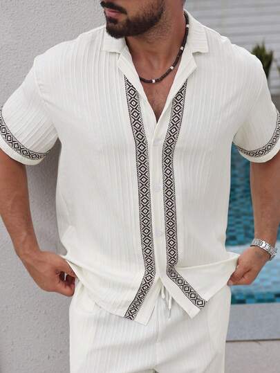 Manfinity CasualCool Men's Geometric Print Button-Up Short Sleeve Casual Shirt - Apricot - View 1