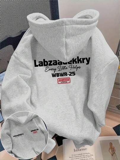Manfinity Dauomo Men's Casual Everyday Letter Print Dropped Shoulder Loose Fit Hoodie - Grey - View 2