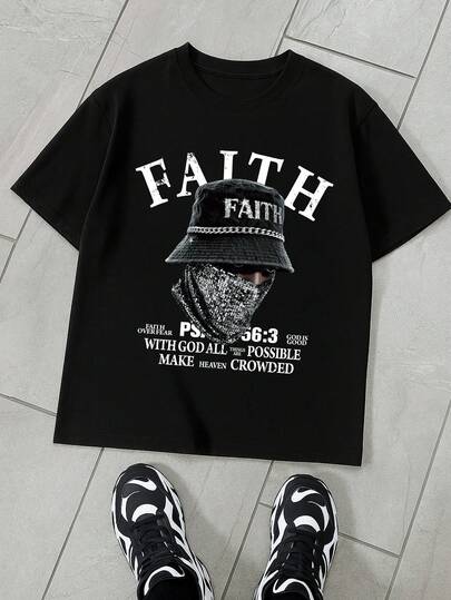 Manfinity Dauomo Men's Slogan & Figure Print Round Neck Short Sleeve Casual T-Shirt - Black - View 1