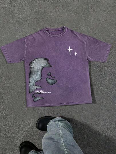Manfinity EMRG Men's Graphic Print Crew Neck Short Sleeve T-Shirt, Summer - Purple - View 1