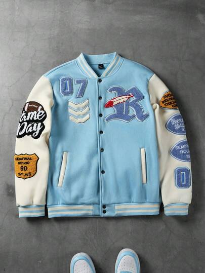 Manfinity EMRG Men's Patchwork Baseball Jacket - Blue - View 1