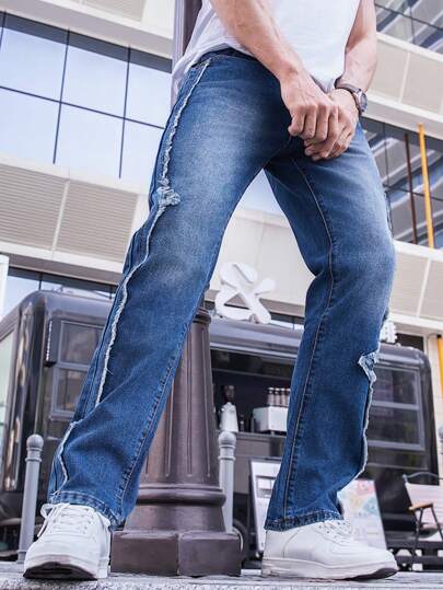 Manfinity EMRG Men's Straight Leg Jeans With Raw Hem - Dark Wash - View 1