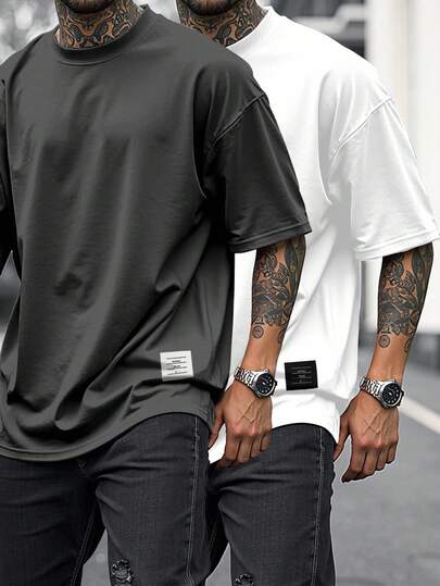 Manfinity Homme 2pcs Casual Loose Fit Versatile Simple Men's Short Sleeve T-Shirts - White - View 2