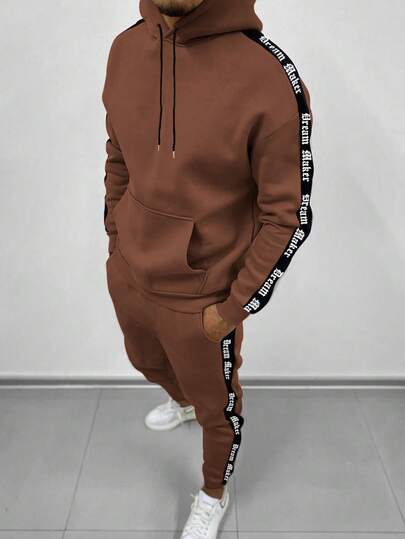 Manfinity Homme 2pcs Men's Casual Hooded Sweatshirt & Sweatpants Set - Brown - View 1