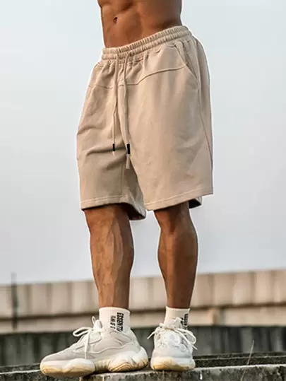 Manfinity Homme Loose Men's Drawstring Waist Wide Leg Shorts Knee Plain Khaki - Khaki - View 1