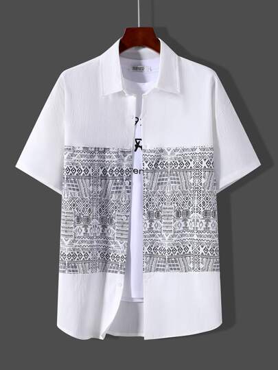 Manfinity Homme Men 1pc Geo Print Shirt - White - View 1