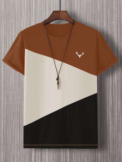 Manfinity Homme Men Colorblock Antler Embroidery Tee Without Necklace - Multicolor - View 1