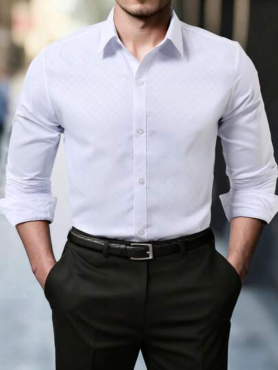 Manfinity Mode Men's Plaid Long Sleeve Single-Breasted Casual/Business Shirt - White - View 1