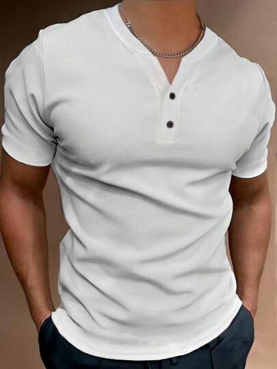 Manfinity Homme Men T-Shirts Fit Crew Neck Short Sleeve Henley Casual Fashion Men Summer Tee - White - View 1