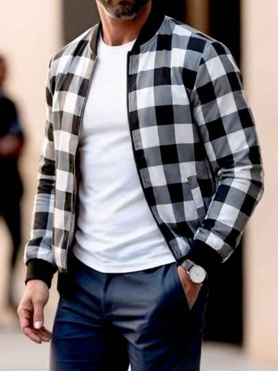 Manfinity Homme Men's Contrast Plaid Long Sleeve Jacket Coat - Multicolor - View 1