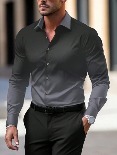 Manfinity Mode Men's Gradient Long Sleeve Shirt - Dark Grey - View 1