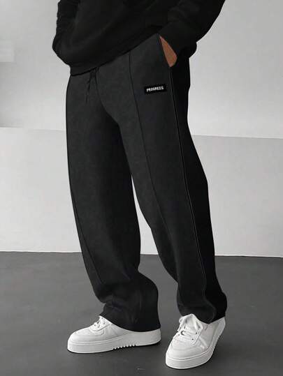 Manfinity Hypemode Loose Fit Men's Patch Detail Drawstring Waist Sweatpants - Black - View 1