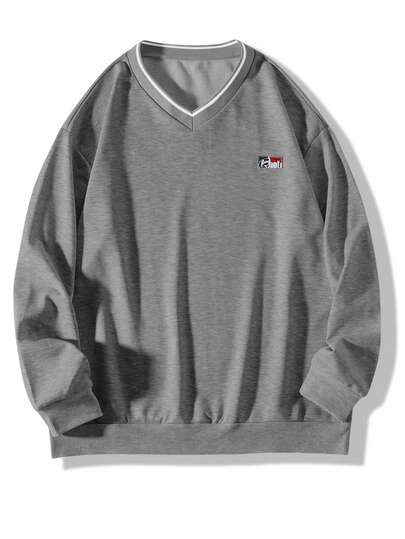 Manfinity Hypemode Loose Fit Men's Patch Detail Drop Shoulder Sweatshirt Grey Sweatshirt 4xl Sweatshirt Sweatshirts V Neck Sweatshirt, Long Sleeve Top - Grey - View 1