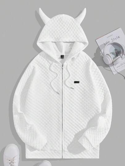 Manfinity RebelGame Men Patched Detail 3D Ear Design Drawstring Hoodie - White - View 1