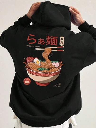 Manfinity Hypemode Loose Men's Hoodie With Ramen & Letter Print - Black - View 1